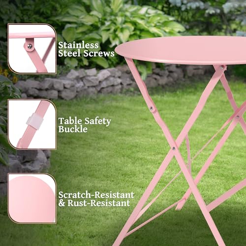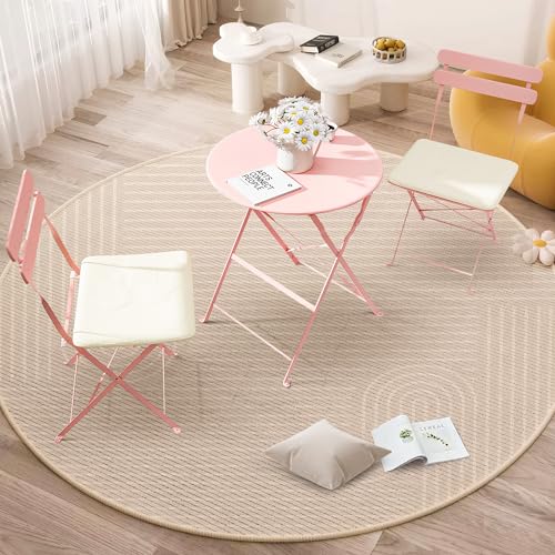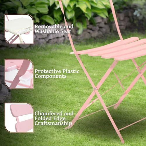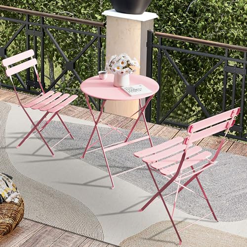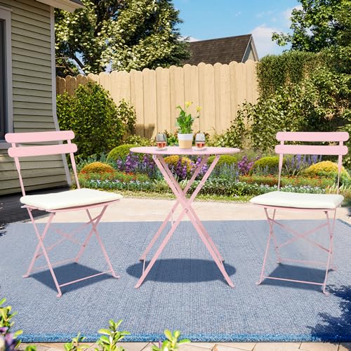 3 Piece Bistro Set Outdoor with Cushion, Small Patio Chairs Set of 2, Weather Resistant Folding Table and Chairs with Premium Steel Frame for Small Balconies, Apartment, Poolside (Blue)