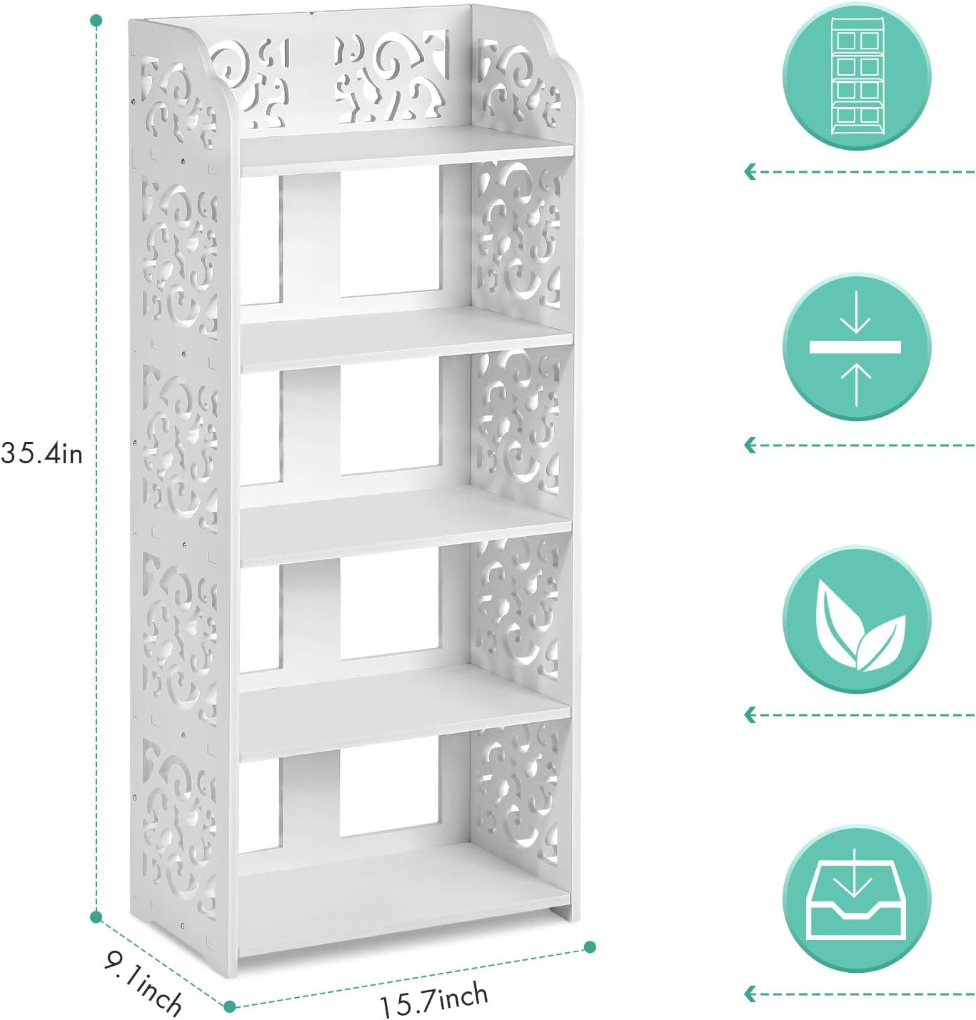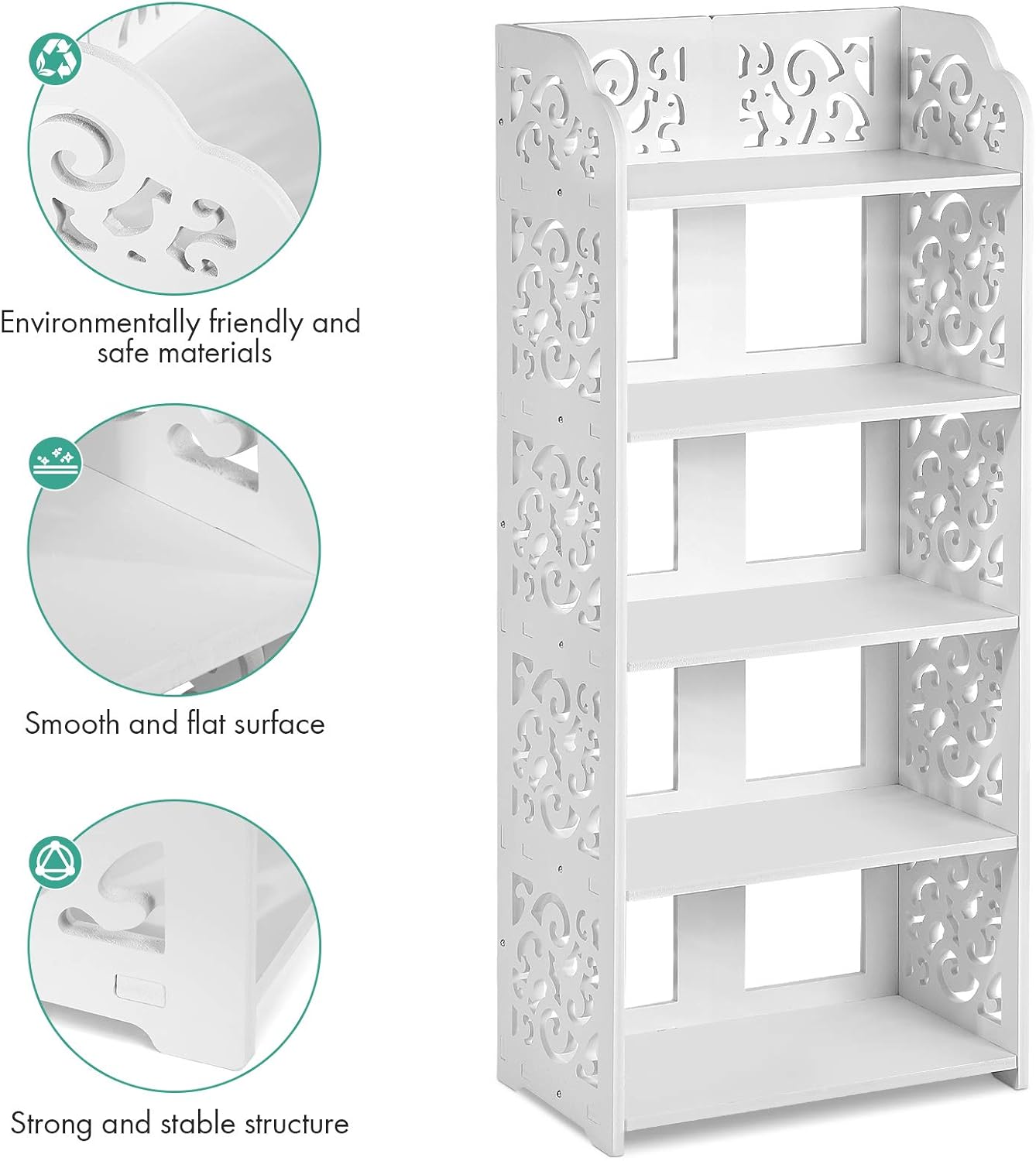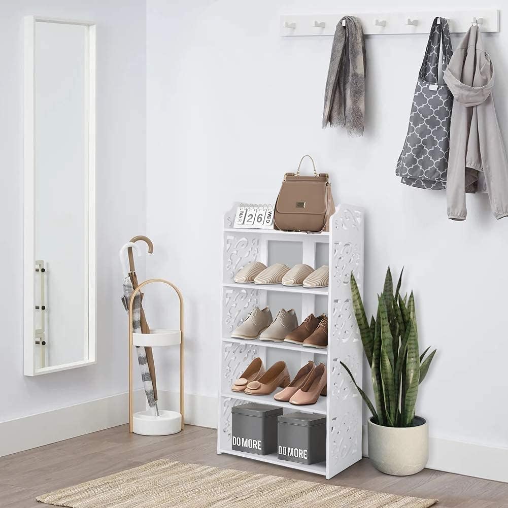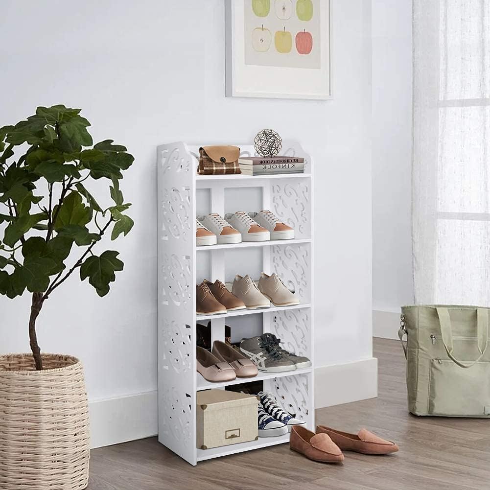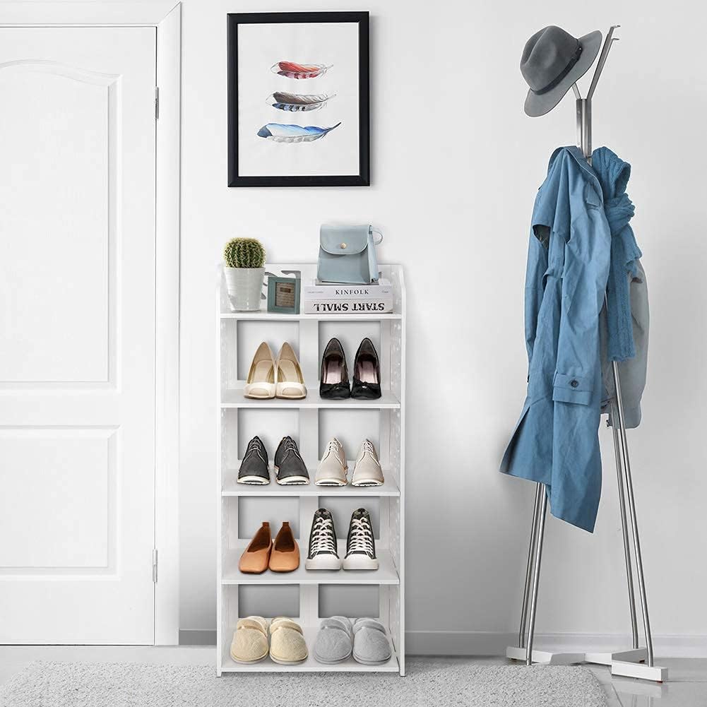 White Shoe Rack, 5 Tier Modern Wooden Shoe Storage Shelf Wood Narrow Shoe Stand Organizer for Home Living Room Bedroom Hallway Entryway Closet
