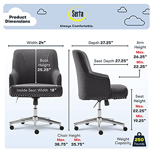 Serta Style Leighton Home Office Chair, Inviting Graphite Twill Fabric 27.25D x 24W x 38.75H in