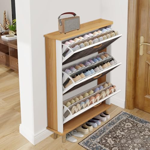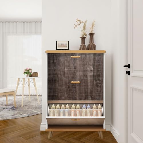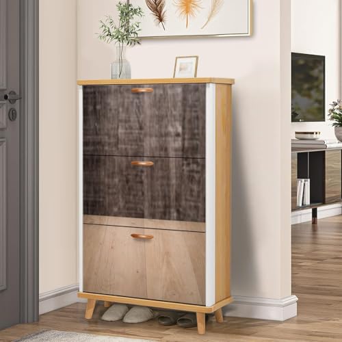 3 Drawer Shoe Cabinet, Artistic shoe cabinet, Old brown rustic weathred dark grunge wooden timber table wall floor Wood Shoe Rack Organizer for Entryway Slim (31.5”W x 9.45”D 46”H)