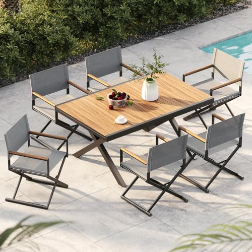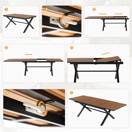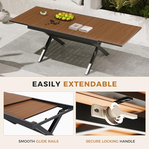 Grand patio Expandable Patio Dining Table, Extra Large 94.5" L x 37" W Outdoor Dining Table for 6-10 Person Wood Grain Rectangular Patio Table with E-Coating for Garden Porch Deck, Apricot