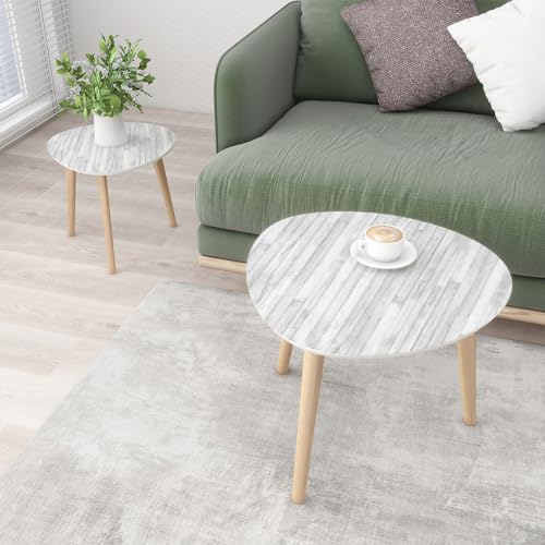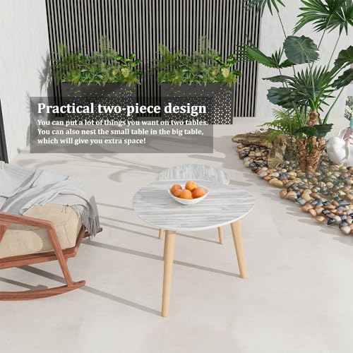 Small Coffee Nesting Table Whitewashed Timber Triangle End Table Center Table Set of 2 Modern Side Table for Living Room Bedroom Balcony