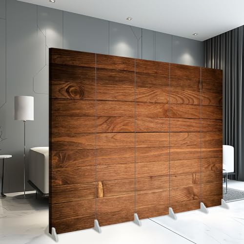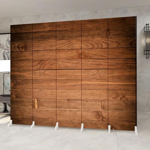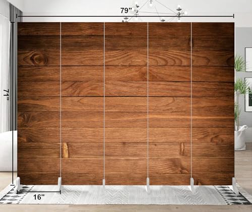 5 Panels Screen Room Divider Wood Texture Plank Grain Wooden Desk Table Floor Old Striped Timber Canvas Screen Indoor Folding Separator Freestanding Protective Wall Divider Privacy Partition