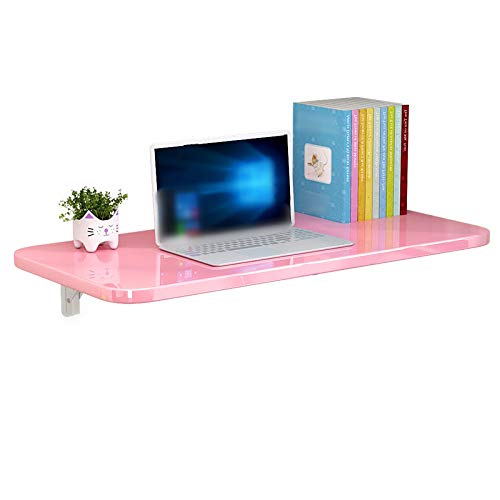Folding Wall Mounted Drop-Leaf Table,Space Saving,Floating Cafe Dining Table with Shelves,Home Office Living Room Bedroom Hanging Computer Desk,Wooden Bookshelf Bar Tables,Pink(40x40cm/16x16