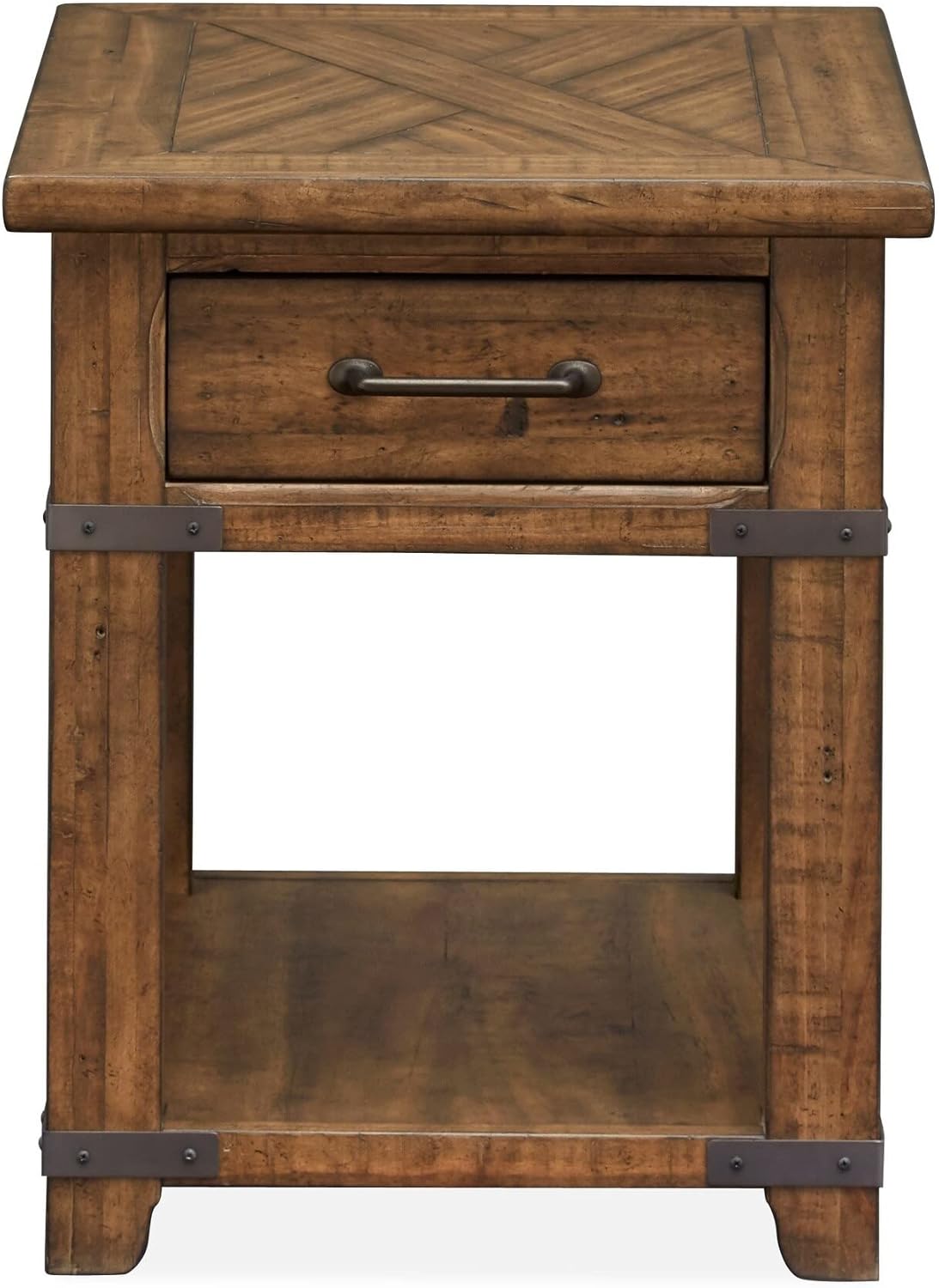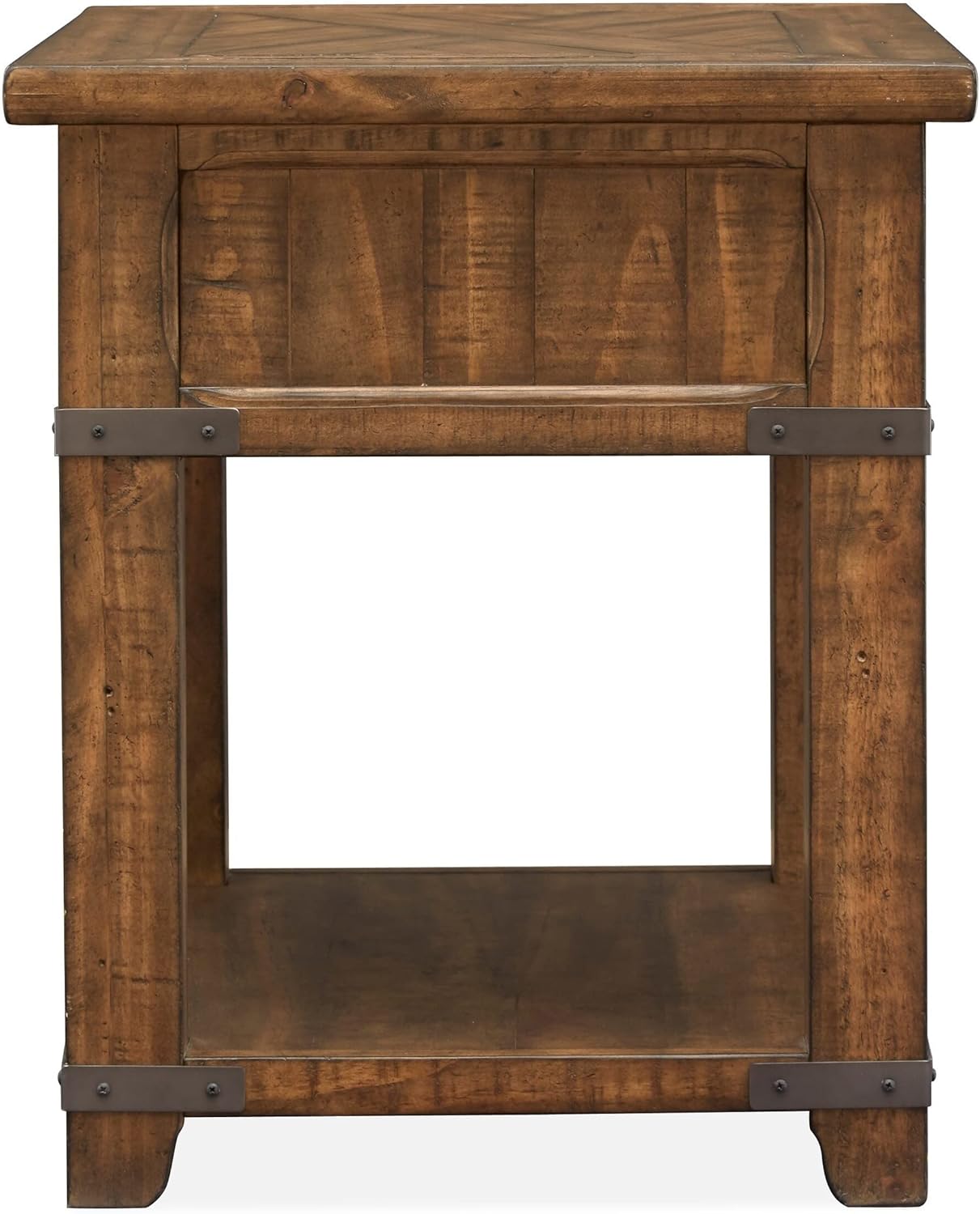 Farmhouse Timber Pine Rectangular End Table 20.00l X 26.00w 24.00h Brown Rustic Iron Rubbed Drawers