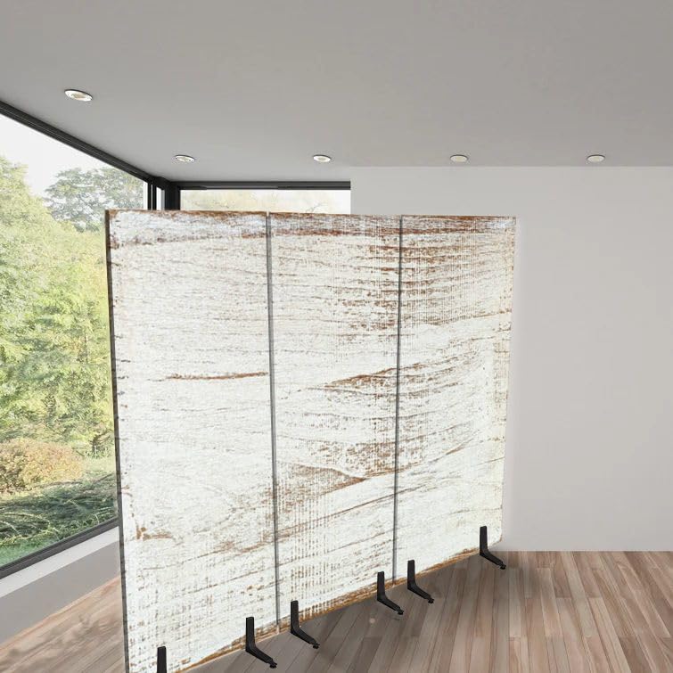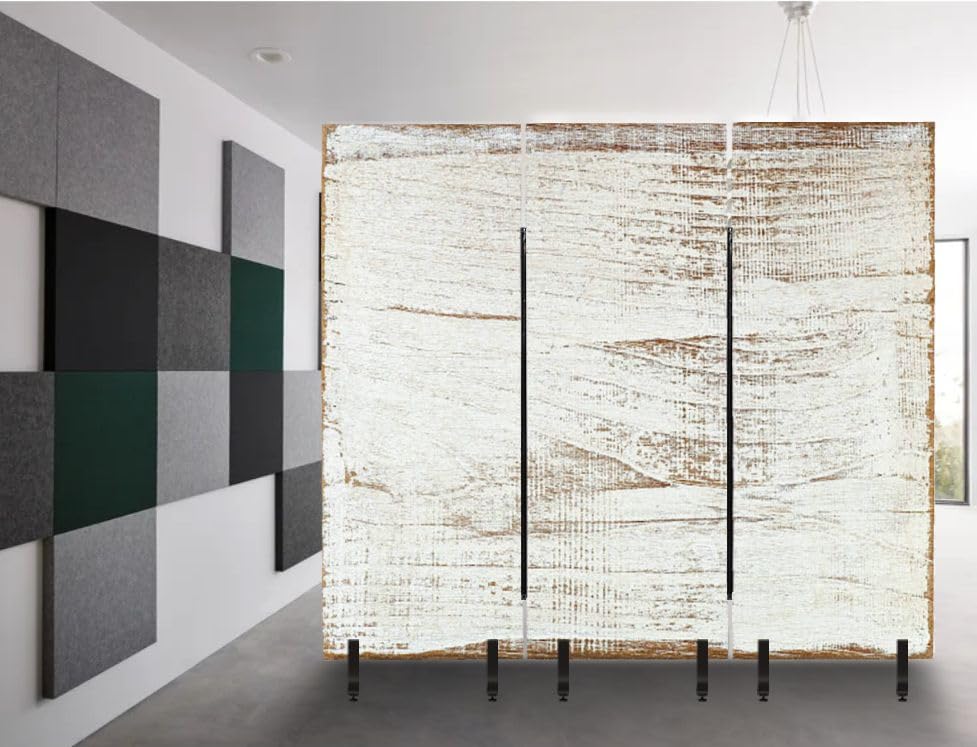 3 Panels Freestanding Acoustic Room Divider Wood Texture Plank Grain Wooden Desk Table Floor Old Striped Timber Soundproof Privacy Screen Folding Sound Absorbing Partition Wall Divider for Office