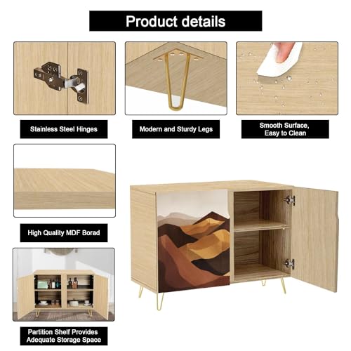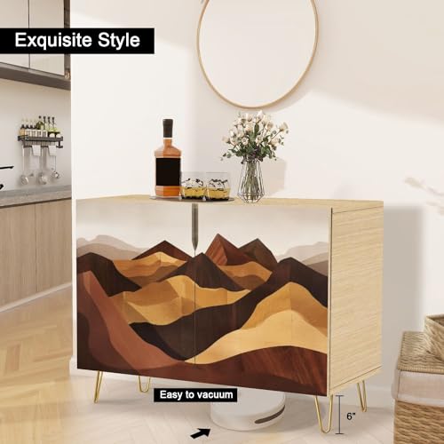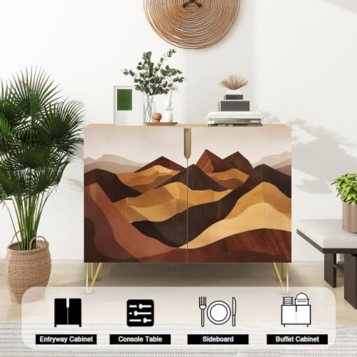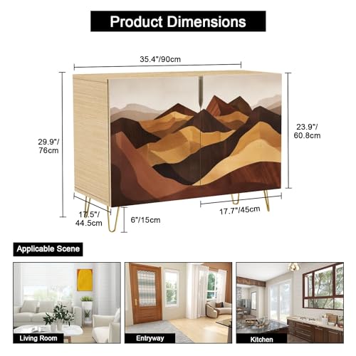 Boho Sideboard Buffet Kitchen Storage Cabinet with 2 Doors Rustic Ski Lodge Scenery Reclaimed Timber Cupboard Console Table Bar Cabinet for Dining Room Hallway 36" L x 17.5" W x 30" H