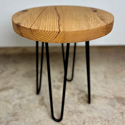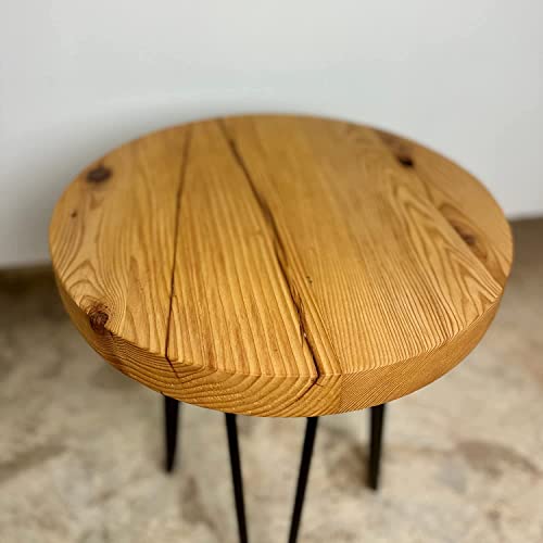 Modern Timber Craft Reclaimed Wood Hairpin Leg Table | 16" Round Rustic Small Barnwood Tables Hair Pin Legs Side Table, Plant Stand, End Table, Nightstand (Lacquered, 28" Leg Height)
