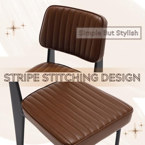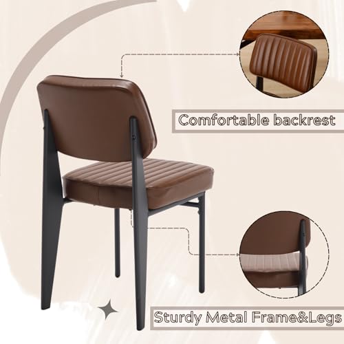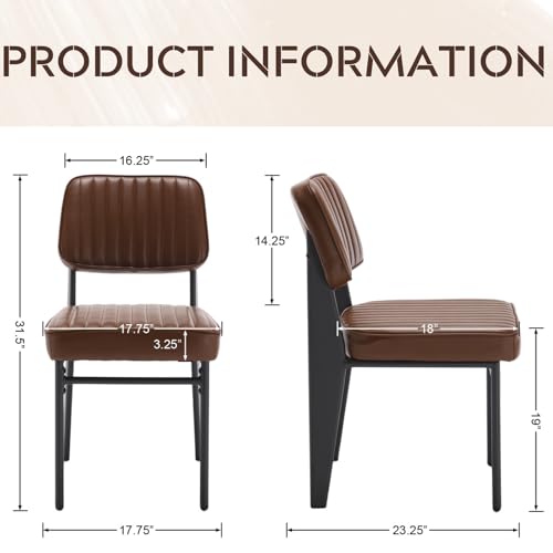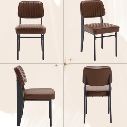 Mid Century Modern Dining Chairs Set of 2 Brown Faux Leather Dining Room Chairs Armless Kitchen Chairs Side Chairs