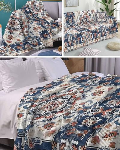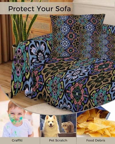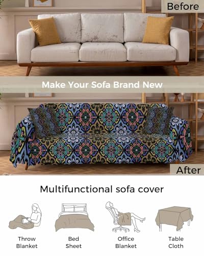 Boho Sofa Cover Couch Covers for 3 Cushion Couch Throw Couch Cover with Tassel Soft Sofa Slipcover Baroque Abstract Blue Yellow Flowers Texture Couch Furniture Protector for Dog Pet 71"x134"