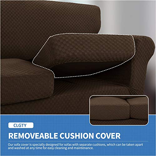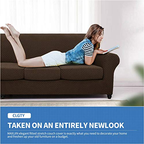 Stretch Sofa Slipcover, Jacquard Couch Sofa Cover with Separate Seat Cushion Cover Non Slip Washable Furniture Protector for Kids Pets