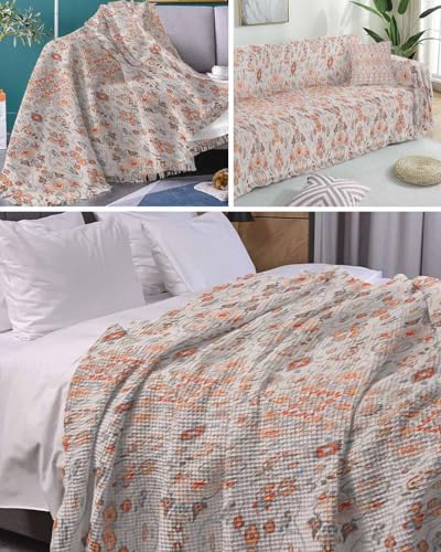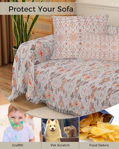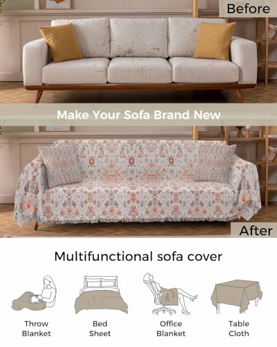 Boho Sofa Cover Couch Covers for 3 Cushion Couch Throw Couch Cover with Tassel Soft Sofa Slipcover Vintage Neutral Geometric Floral Texture Pink Couch Furniture Protector for Dog Pet 71"x134"