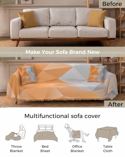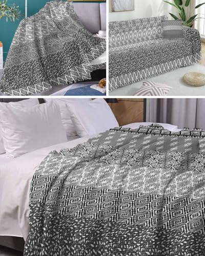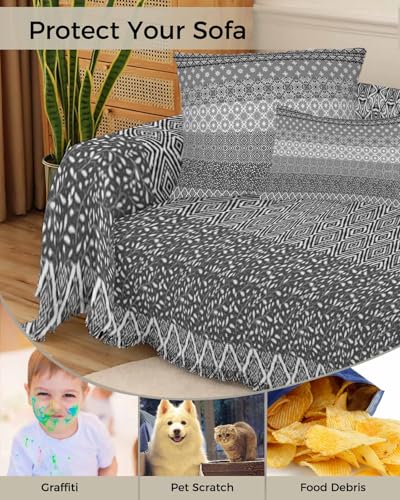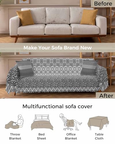 Boho Sofa Cover Couch Covers for 3 Cushion Couch Throw Couch Cover with Tassel Soft Sofa Slipcover Modern Art Geometric Texture Gray Couch Furniture Protector for Dog Pet 71"x134"