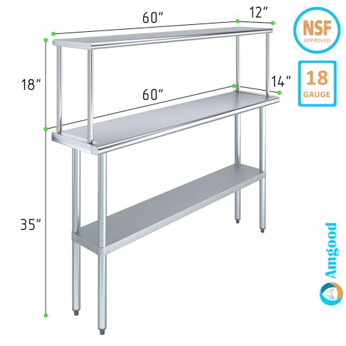 Stainless Steel Work Table with Wide Single Tier Overshelf | Metal Kitchen Prep Table & Shelving Combo (24" x 36" Work Table + 12" Overshelf)