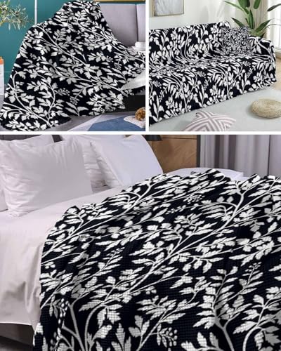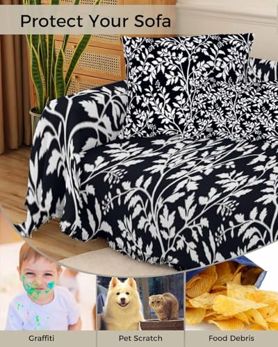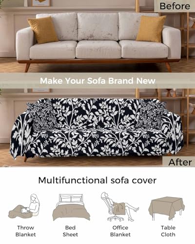 Floral Sofa Cover Couch Covers for 3-4 Cushion Couch Throw Couch Cover with Tassel Soft Sofa Slipcover Modern Flowers Leaf Plants Black White Couch Furniture Protector for Dog Pet 71"x150"