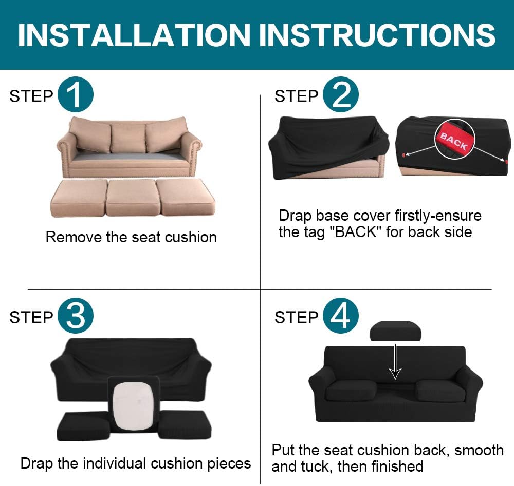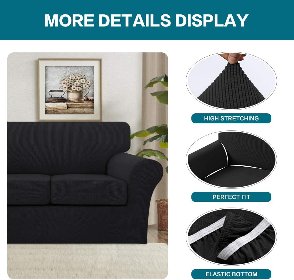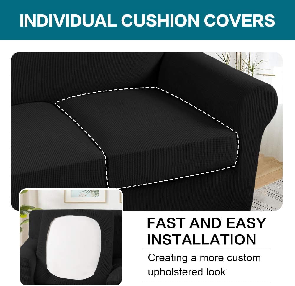 Turquoize Stretch Sofa Covers for 3 Cushion Bundle Loveseat Cover for 2 Cushion Bundle Armchair Cover, Sofa Furniture Covers with Individual Cushion Covers, Black