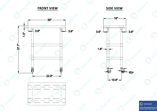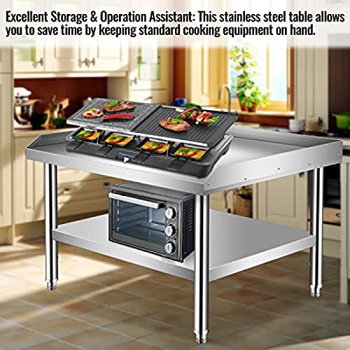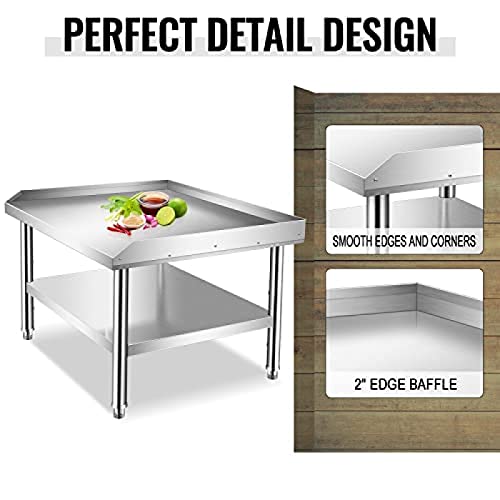 Stainless Steel Equipment Stand with Undershelf, NSF Commercial Prep & Work Table with Rear and Side Risers, Heavy Duty Grill for Kitchen, Bar, Restaurant, Home and Hotel,36x30x24"