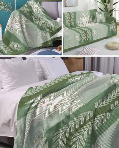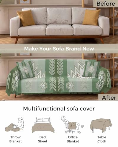 Boho Sofa Cover Couch Covers for 3-4 Cushion Couch Throw Couch Cover with Tassel Soft Sofa Slipcover Vintage Farmhouse Aztec Stripe Brown Furniture Protector Couch for Dog Pet 71"x150"