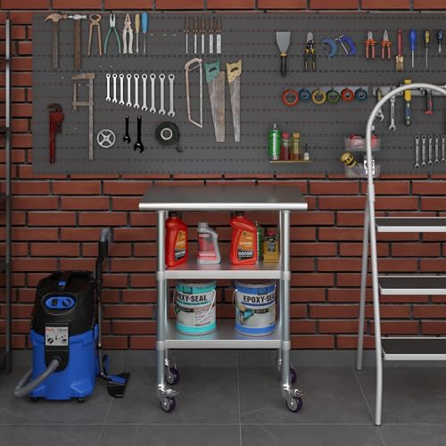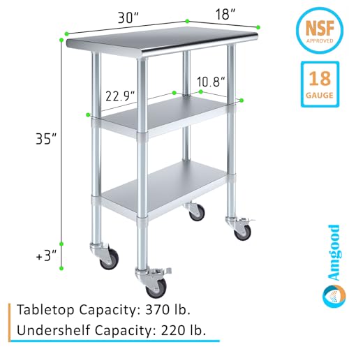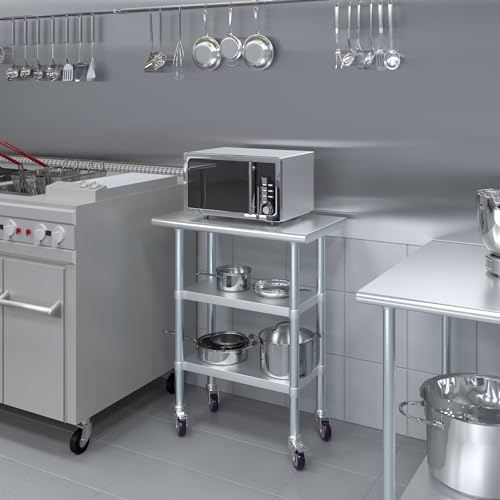 Stainless Steel Work Table Open Base & Wheels | NSF Kitchen Island Food Prep | Laundry Garage Utility Bench (36" Long x 18" Deep)