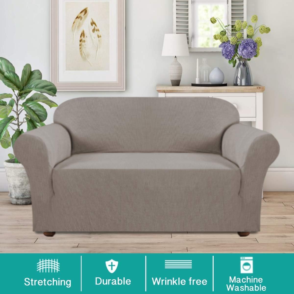 Turquoize Sofa Slipcover Bundle with Loveseat Cover Couch Covers 1 Piece Sofa Covers for 3 Cushion Couch Furniture Protector Taupe