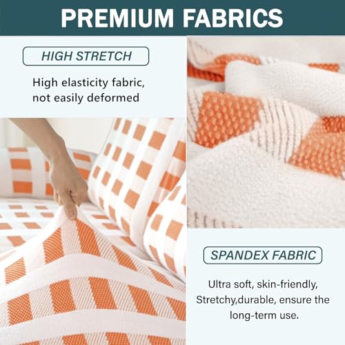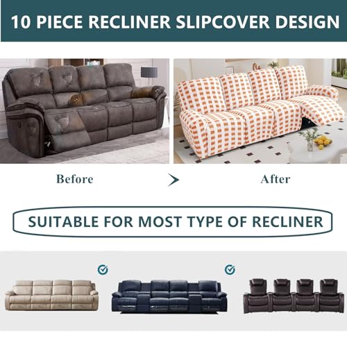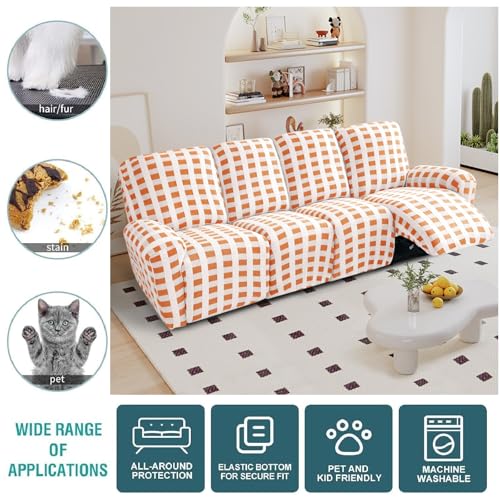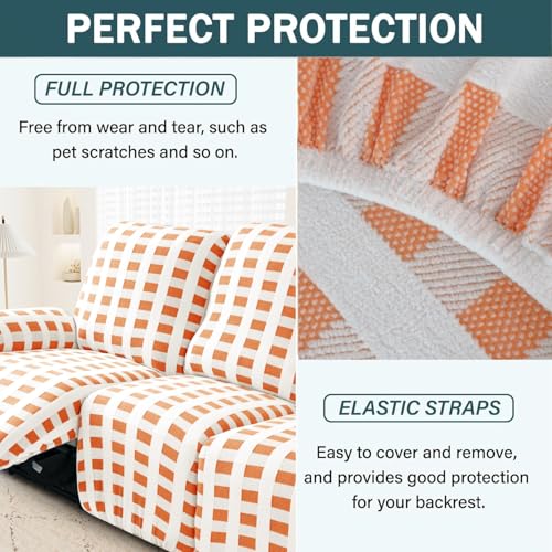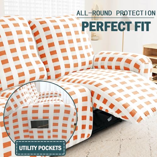 10-Piece Loveseat Recliner Slipcover Stretch Jacquard Pattern Recliner Sofa Cover 4 Seater Washable Reclining Couch Cover with Pocket Fitted Furniture Protector Cover(Orange)