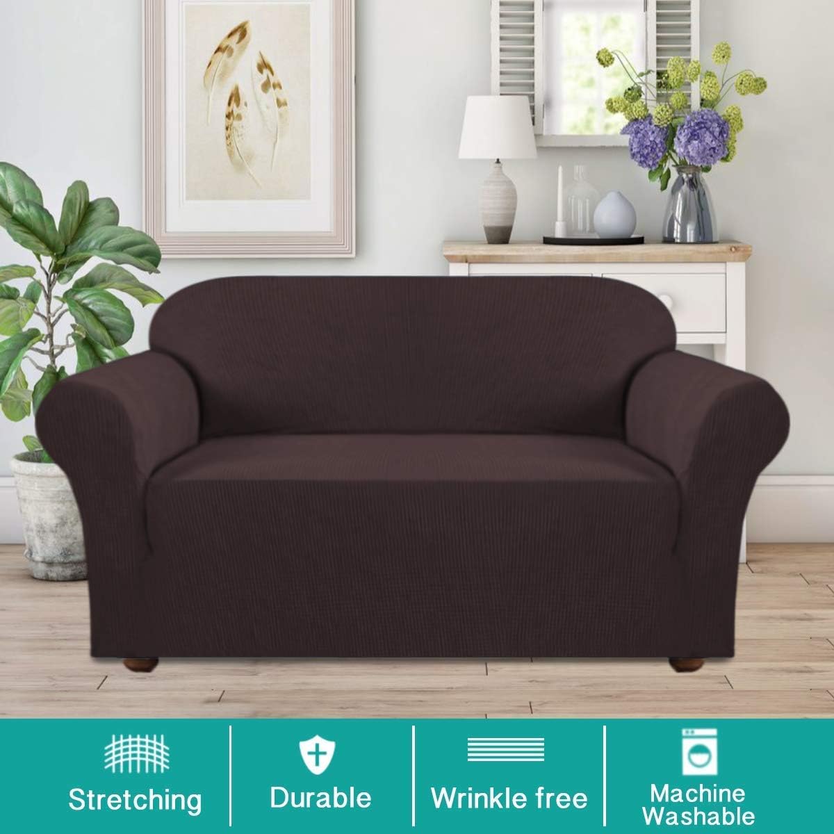 Turquoize Sofa Slipcover Bundle with Loveseat Cover Couch Covers 1 Piece Sofa Covers for 3 Cushion Couch Furniture Protector Brown