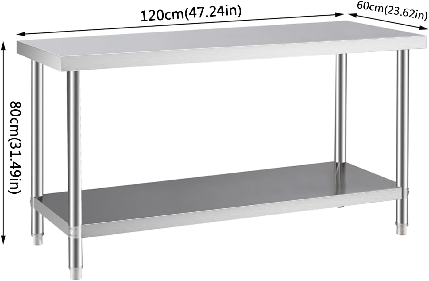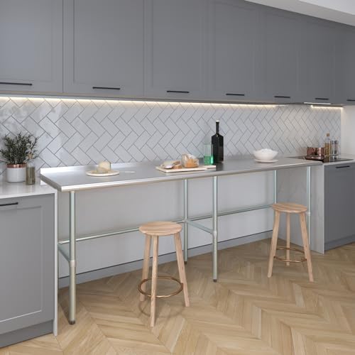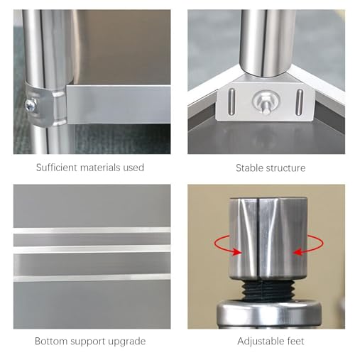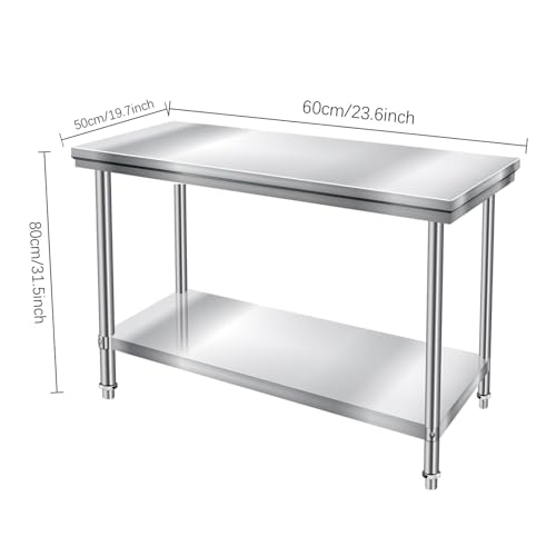 Stainless Steel Work Table Open Base, Kitchen Prep Table, 23.6"X 19.7" Commercial Single Layer Prep Table, Heavy-Duty Bench with Flexible Table Legs for Cafeterias, Clean Rooms, Hospitals
