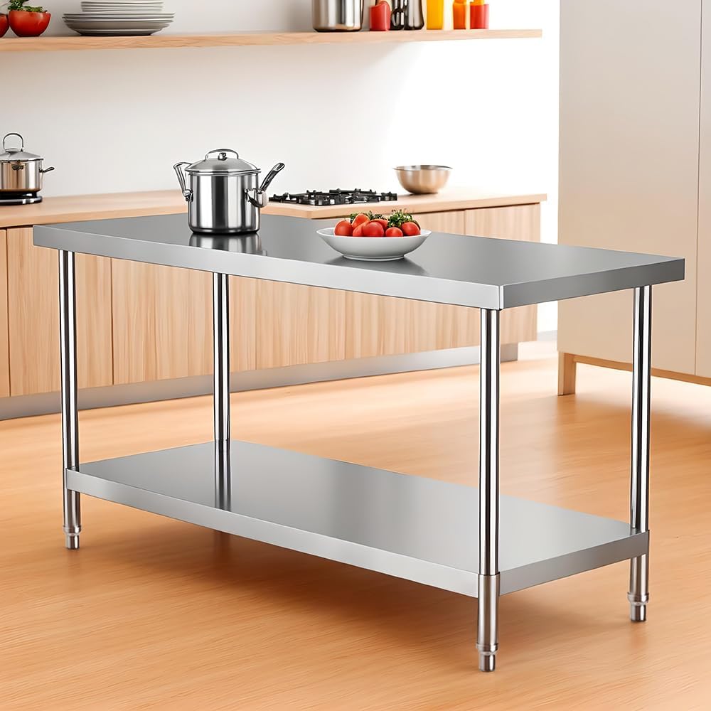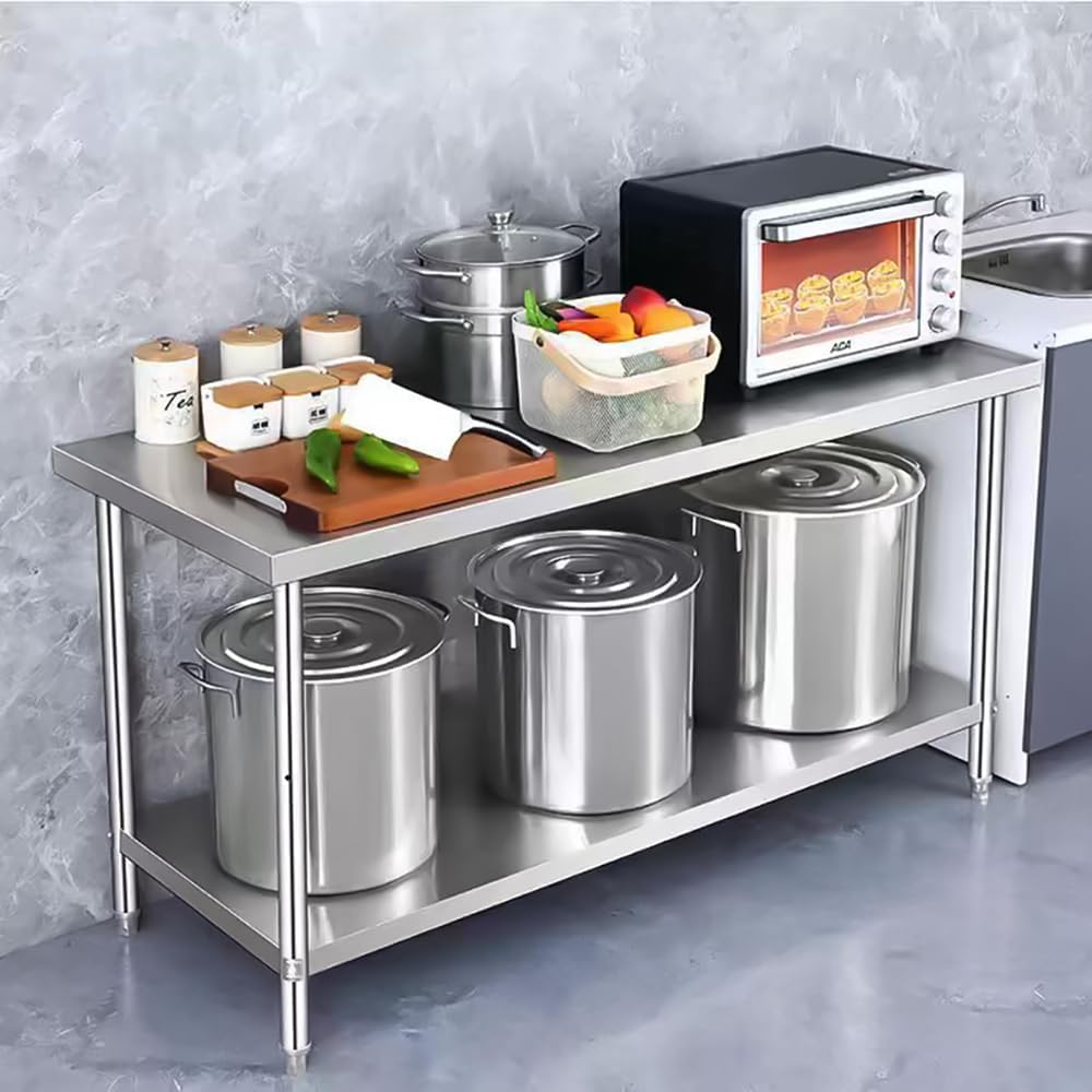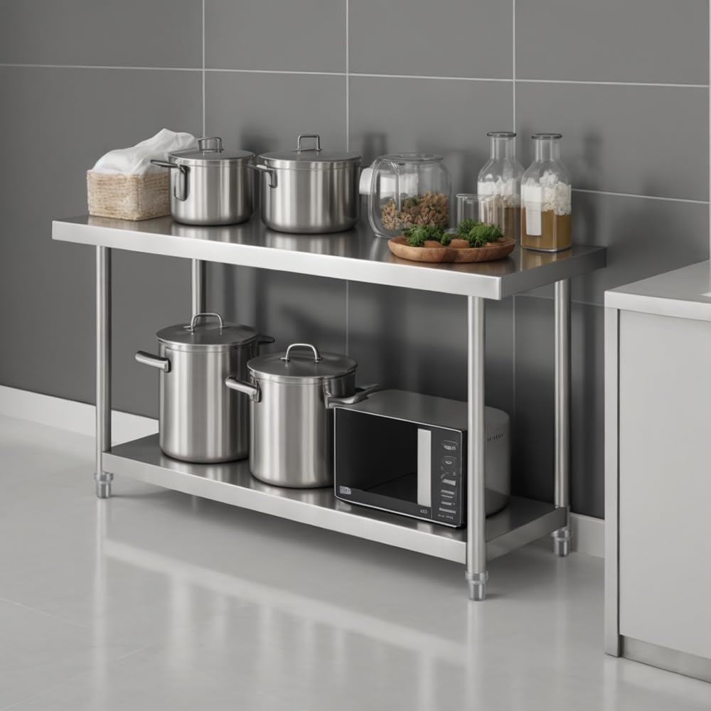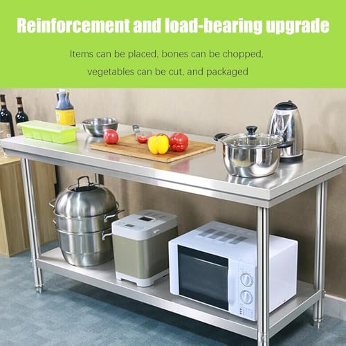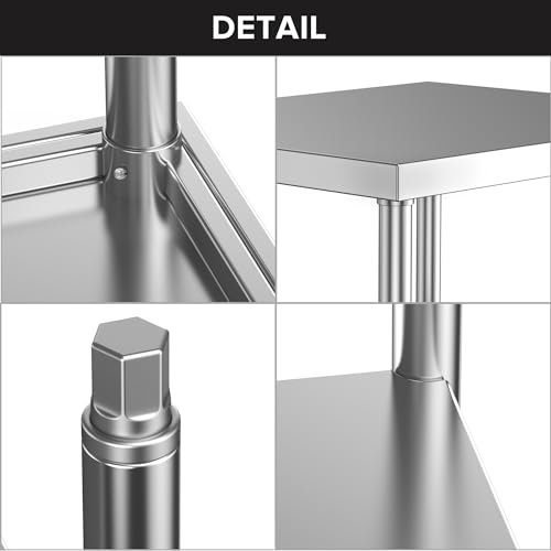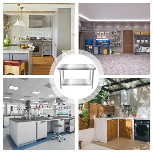 Heavy Duty Stainless Steel Prep Table, Metal Commercial Worktable with Under Shelf for Kitchen Factories Workshops Restaurant Garage Backyard, 48 x 24 inch, Silver, HD-HN0091