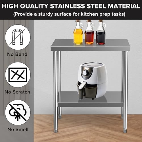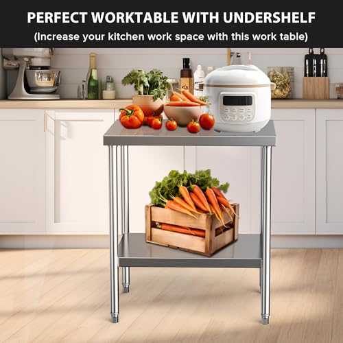 Stainless Steel Table for Prep & Work 24 x 30 Inches, NSF Commercial Heavy Duty Food Prep Worktable with Undershelf for Restaurant, Home and Hotel Christmas Preparation Table