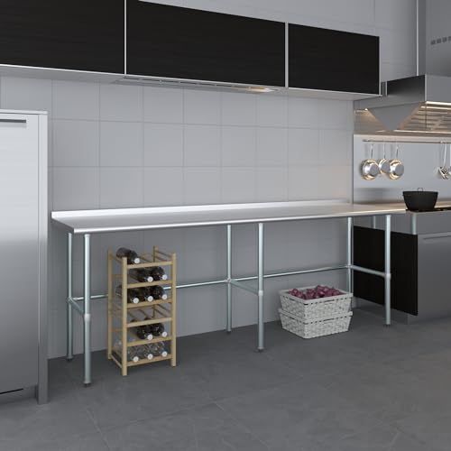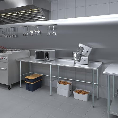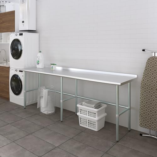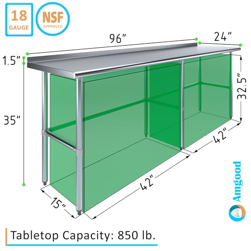 AmGood Stainless Steel Work Table Open Base with 1.5" Backsplash | Metal Kitchen Food Prep Table | NSF (60" Long x 24" Deep)
