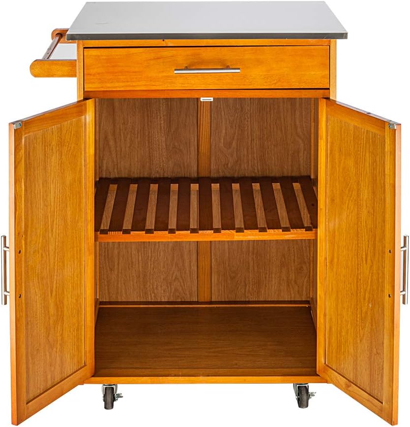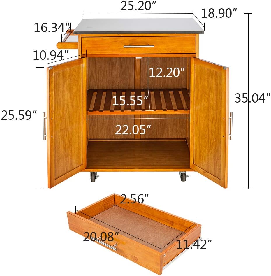 Rolling Kitchen Island with Stainless Steel Top, Kitchen Cart Storage Cabinet on Wheels,Outdoor Grill Table, Grill Cart Outdoor, Pizza Oven Table and Food Prep Table,Grill Stand for Outside BBQ