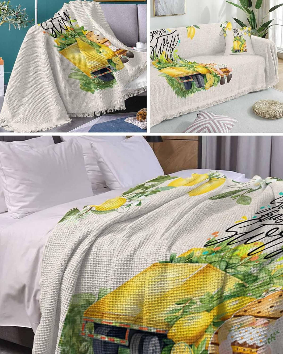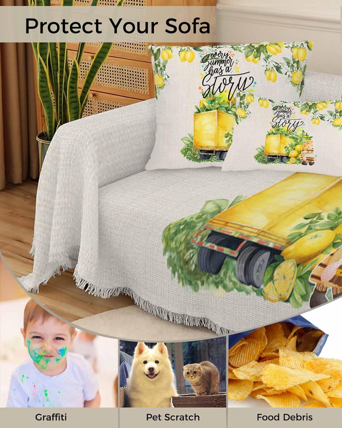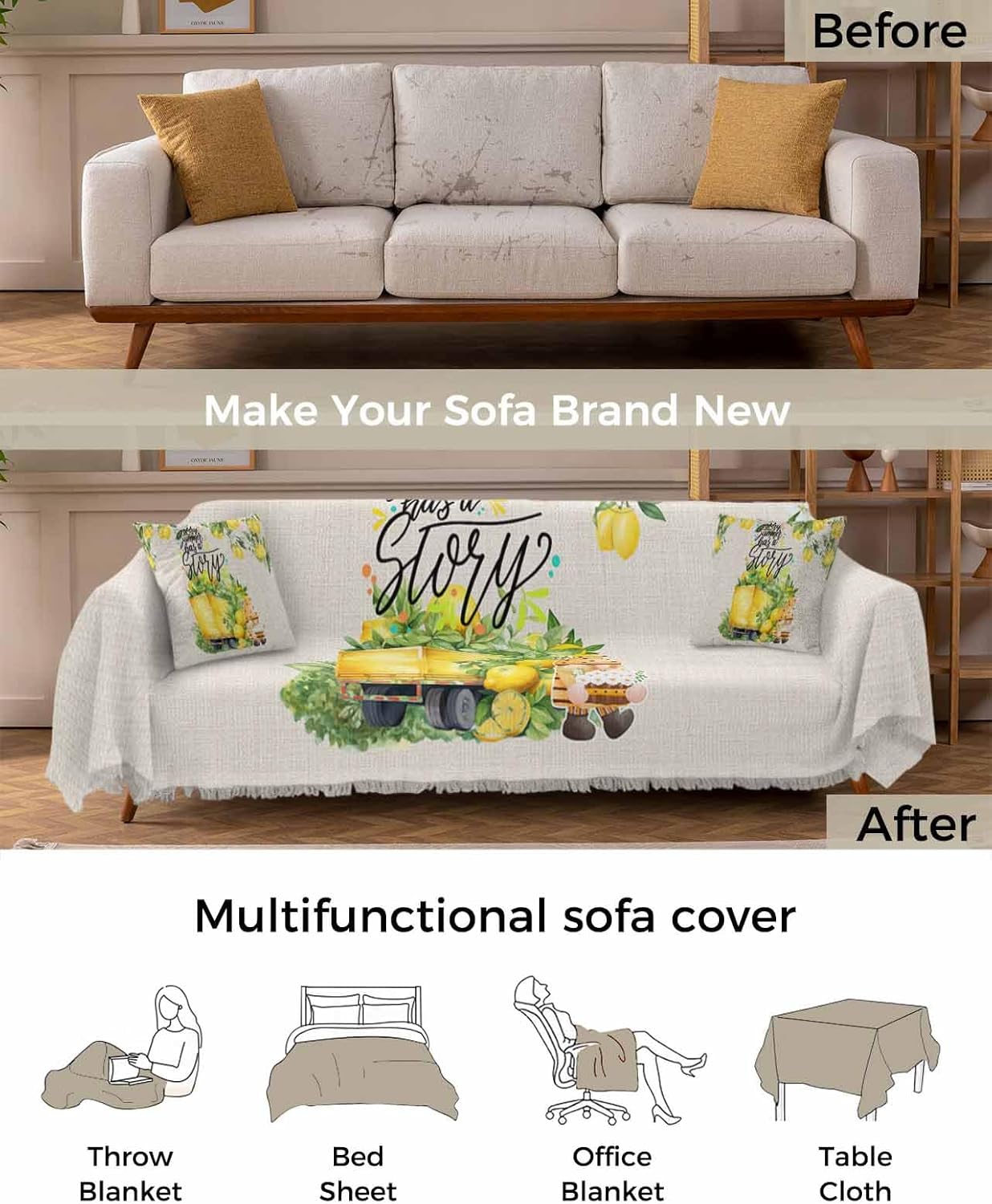 Lemon Yellow Sofa Cover Couch Covers for 3 Cushion Couch Throw Couch Cover with Tassel Soft Sofa Slipcover Summer Truck Gnome Tree Leaf on Beige Couch Furniture Protector for Dog Pet 71"x134"