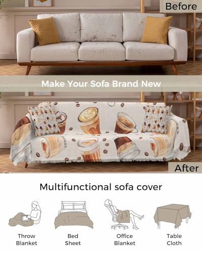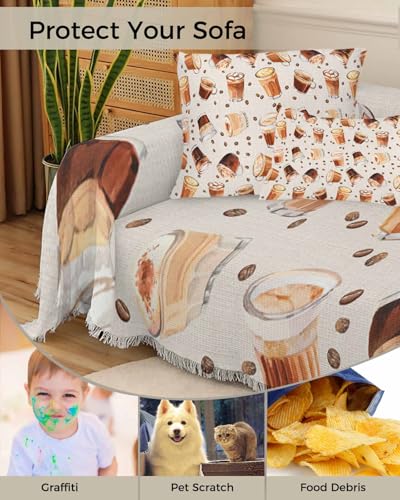 Coffee Texture Black Sofa Cover Couch Covers for 3-4 Cushion Couch Throw Couch Cover with Tassel Soft Sofa Slipcover Modern Coffee Beans Texture Couch Furniture Protector for Dog Pet 71"x150"