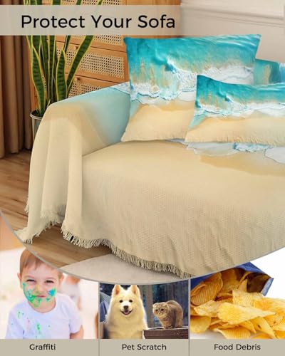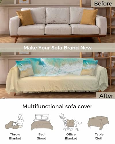 Ocean Wave Teal Green Sofa Cover Couch Covers for 3-4 Cushion Couch Throw Couch Cover with Tassel Soft Sofa Slipcover Summer Seawater Sunlight Couch Furniture Protector for Dog Pet 71"x150"