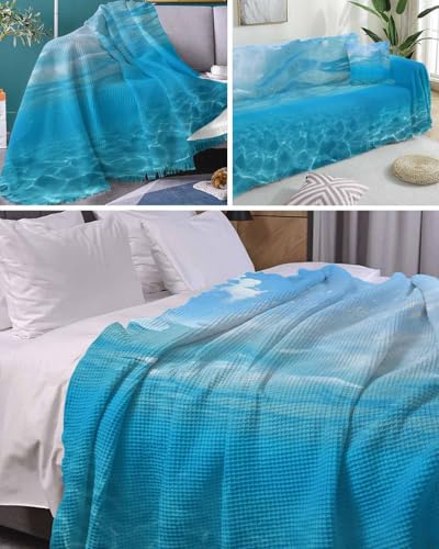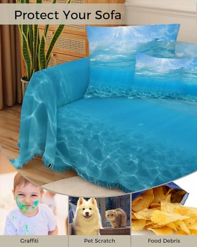 Ocean Blue Sofa Cover Couch Covers for 3 Cushion Couch Throw Couch Cover with Tassel Soft Sofa Slipcover Summer Seawater Sunlight Couch Furniture Protector for Dog Pet 71"x134"
