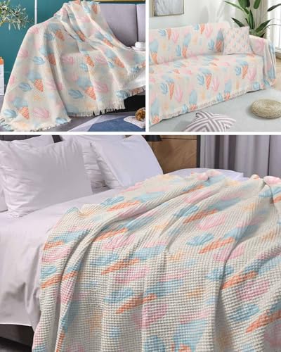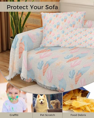 Ice Cream Texture Sofa Cover Couch Covers for 3 Cushion Couch Throw Couch Cover with Tassel Soft Sofa Slipcover Summer Blue Pink Starfish Shells White Couch Furniture Protector for Dog Pet 71"x134"