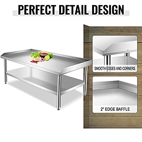 Stainless Steel Equipment Stand with Undershelf, NSF Commercial Prep & Work Table with Rear and Side Risers, Heavy Duty Grill for Kitchen, Bar, Restaurant, Home and Hotel,28x24x24"