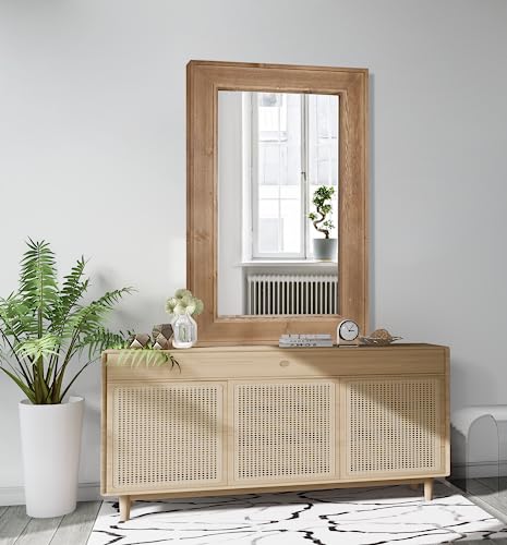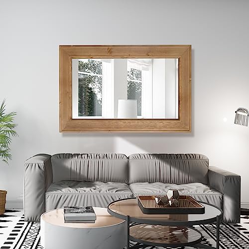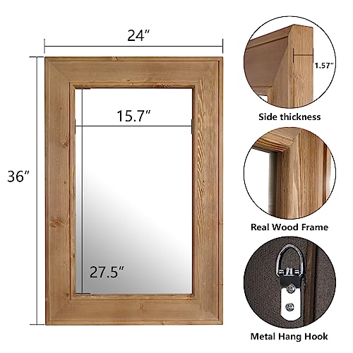 WallBeyond Rustic Wooden Framed Mirror 24 x 36 inch Natural Wood Mirror for Bathroom Farmhouse Decor Wood Wall Mirror Rectangle Vintage Wood Mirror for Entryway, Bedroom, Living Room (Natural)
