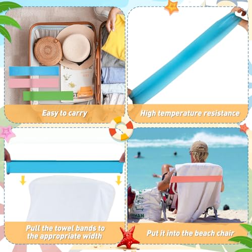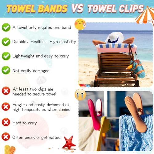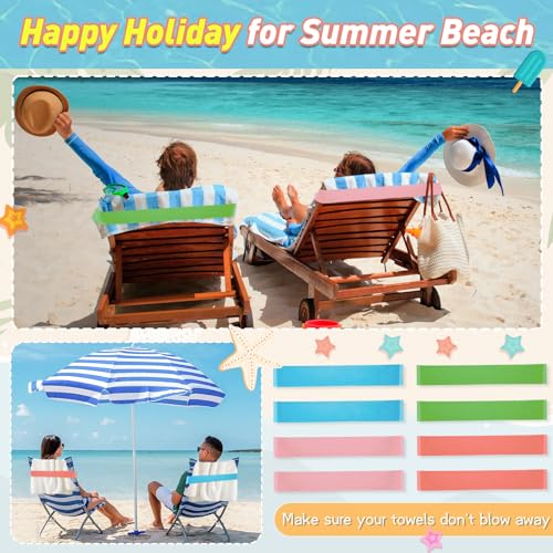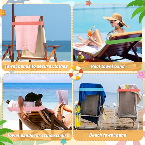 8 Pack Towel Bands for Beach Cruise Chairs,Stretch Rubber Beach Chair Towel Clips,Beach Towel Clips Summer Beach & Cruise Accessories Perfect Alternatives for Lounge Chair Clips for Pool Towels