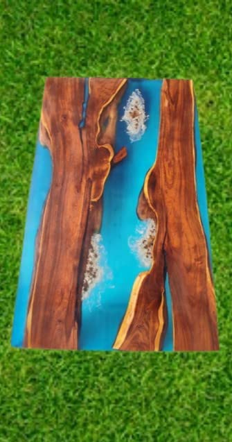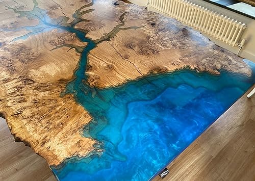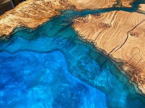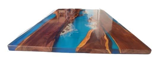TUZECH Unique Wood Resin Epoxy Realistic BLue River Look with Wave Table Coastal table Top Dining Table Coffee Table Side/End Table Home Décor (16.5" Inches Tall, 108 x 36 Inches)
