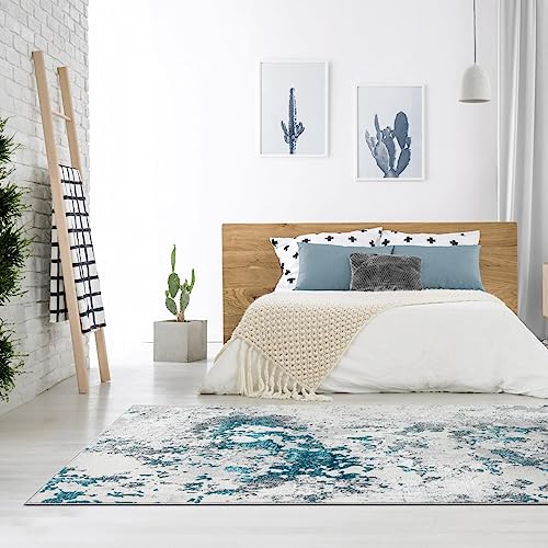 LUXE WEAVERS Modern Abstract High Low Texture Area Rug,Turquoise,5'X7'