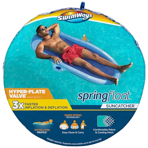 SwimWays Spring Float SunCatcher Pool Lounge Chair with Hyper-Flate Valve, Blue (Pack of 4)