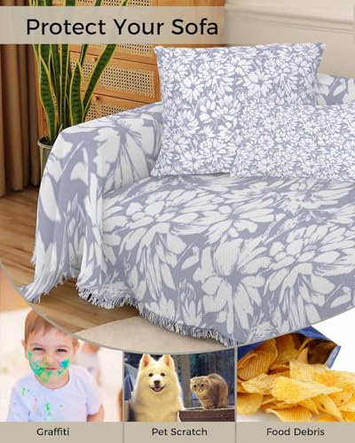 Floral Purple Sofa Cover Couch Covers for 3 Cushion Couch Throw Couch Cover with Tassel Soft Sofa Slipcover Spring Chrysanthemum Flowers Plants Couch Furniture Protector for Dog Pet 71"x134"