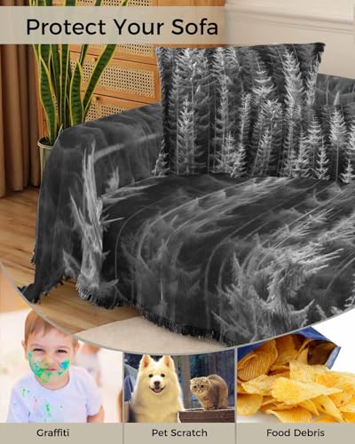 Summer Tree Sofa Cover Couch Covers for 3 Cushion Couch Throw Couch Cover with Tassel Soft Sofa Slipcover Pine Trees Texture Couch Furniture Protector for Dog Pet 71"x134"