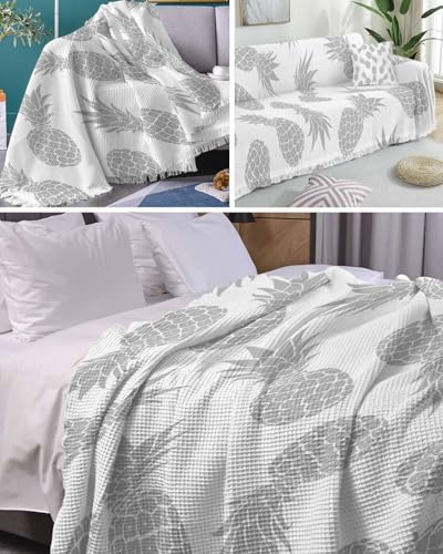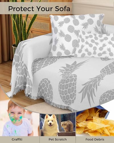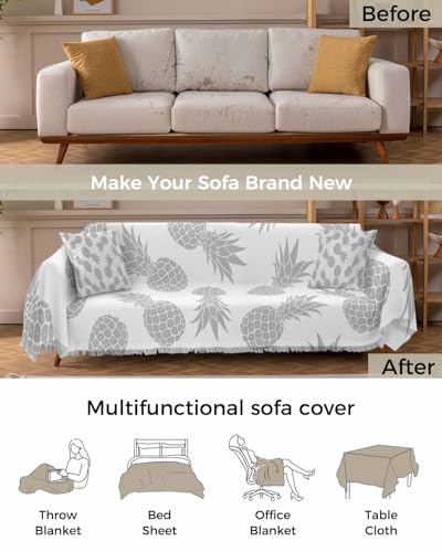 Pineapple Yellow Sofa Cover Couch Covers for 3-4 Cushion Couch Throw Couch Cover with Tassel Soft Sofa Slipcover Summer Fruits Texture White Couch Furniture Protector for Dog Pet 71"x150"