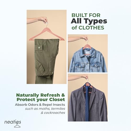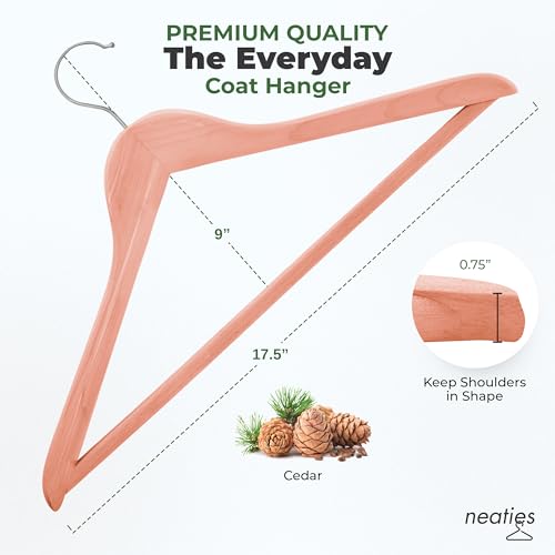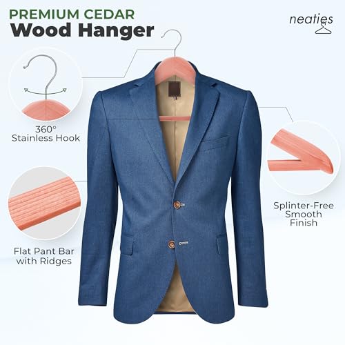 Neaties Premium Red Cedar Hangers for Closet Wide 3/4" Thick Cedarwood Hangers with Flat Bar - Cedar Pant Bar Cedar Jacket Hangers Cedar Suit Hangers Wooden Hangers Cedar Coat Hangers (8 Pack)