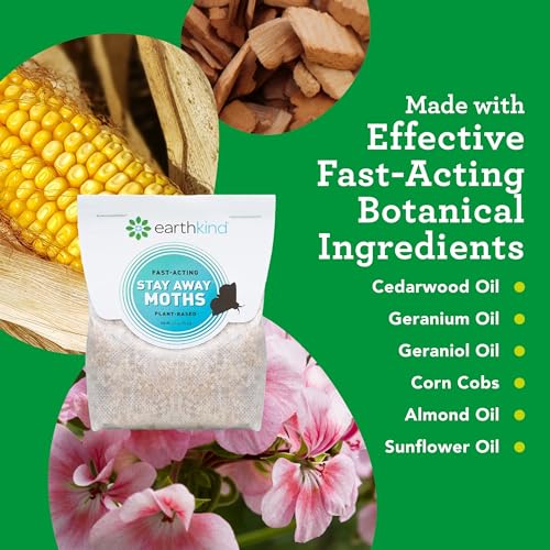 EarthKind Stay Away Moths - Moth Deterrent for Closet, Pantry & More - DIY Pest Control Pouches for Moths - with Cedarwood Oil & Geranium Oil - 6-Pack with Extended Release Pouch Pod