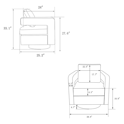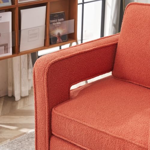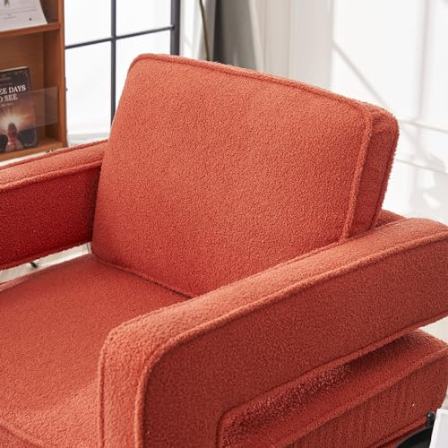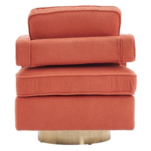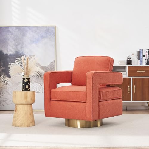 Upholstered Swivel Accent Chair, Modern Swivel Barrel Chair with 360 Degree Swivel Metal Base, Convertible Seat Cushion, Comfy Armchair for Waiting Room Office Orange As Shown