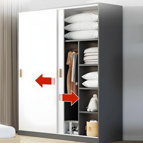 LITFAD Mutil-Functional Wood Wardrobe Modern Storage Armoire Closet with Sliding Doors Freestanding Closet with Shelves and Clothing Rods for Bedroom,White-39.5" L x 18" W x 71" H