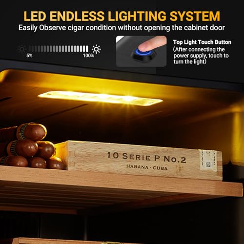 Electric Cabinet 300 Count, 3 in 1 50L Large Storage Cabinet with Hygrometer, Water Tank, Fan & Spanish Cedar Lining, Lights Control System, 65%-75%, 61-72℉, Gift for Cigar-Lovers